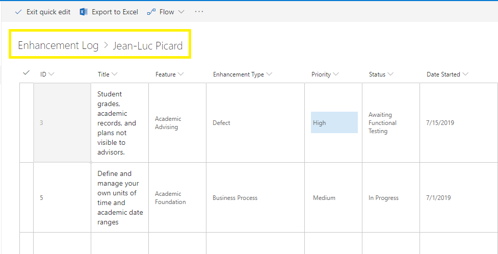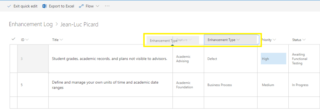 Microsoft recently announced Enhanced Quick Edit for SharePoint lists and libraries features. These value-added updates go along way in modernizing the look and functionality of SharePoint lists. In this blog post I will try to showcase the Quick Edit updates with a list design that can be used for tracking enhancements. This is a no-low code approach to solution development.