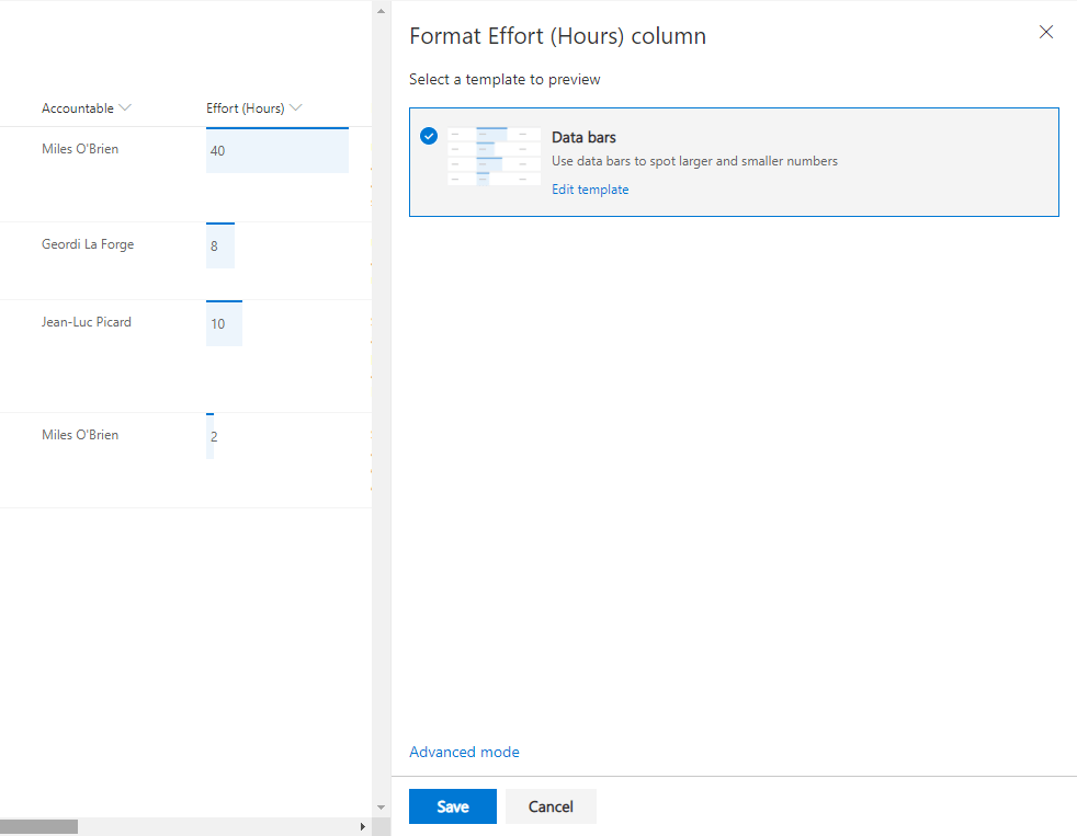- Click the down arrow on the “Effort (Hours)” column, select “Column settings” and click “Format this column”.
