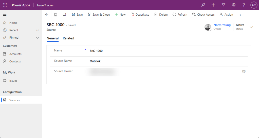 Set the Display name to “Source” and select Enable attachments (including notes and files) and then click Save. Note: Dataverse creates a plural name for the table so try to name tables in singular form. Enabling attachments will allow us to use the Timeline control in our Model-Driven app.